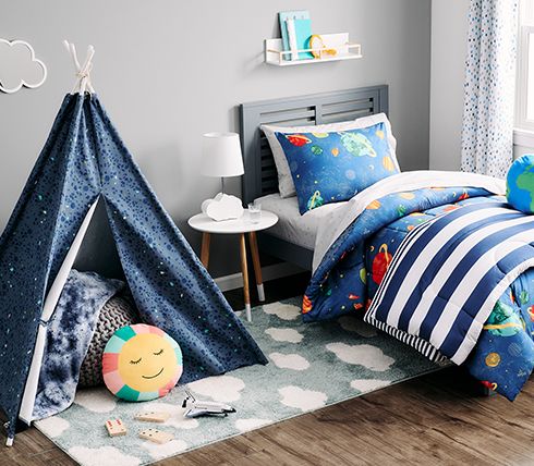 Modern Kids Bedroom Design. Bring it home with the Adrian Cotton Blend Flannel Sheet Set One-of-a-Kind Ritvik Hand-Knotted Steel Gray 8 x 10 Area Rug and Mellow Geometric Semi Sheer Single Curtain Panel. Shop Target for kids room ideas and inspiration.